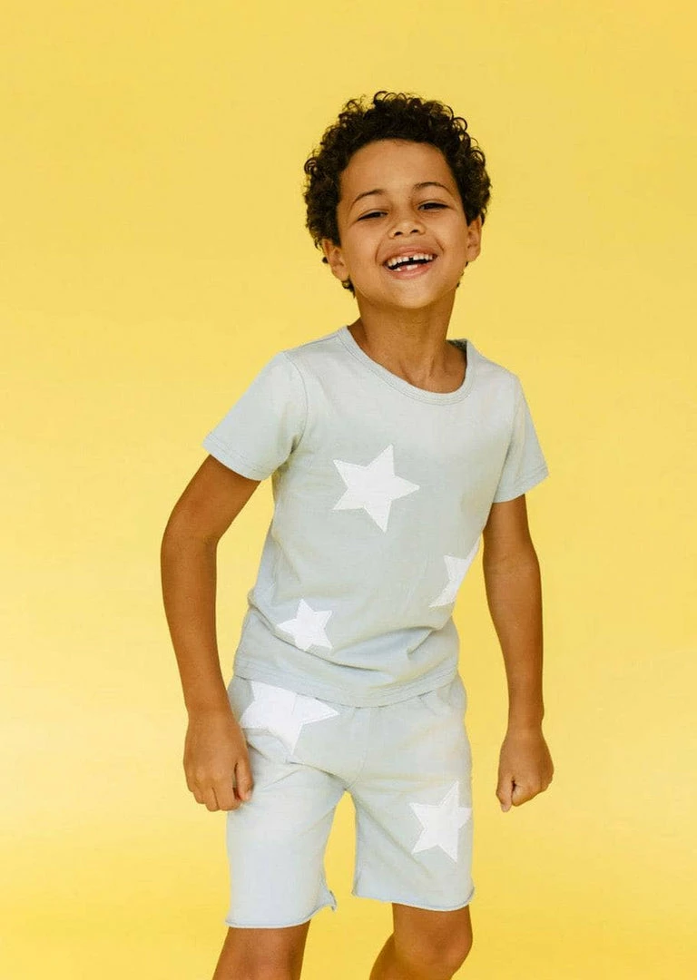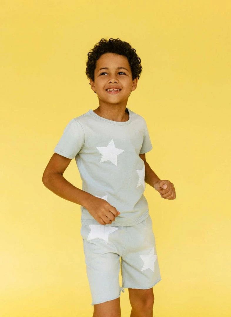 A cool soft cloth made a matching set with a unique star design on its front. Great as a playtime outfit!ย