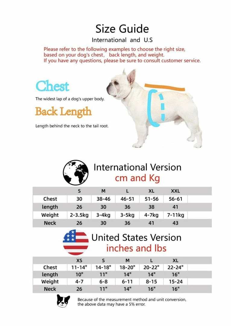 Choose from 4 sizes for small to medium sized dogs. Please refer to the size chart for appropriate sizing.