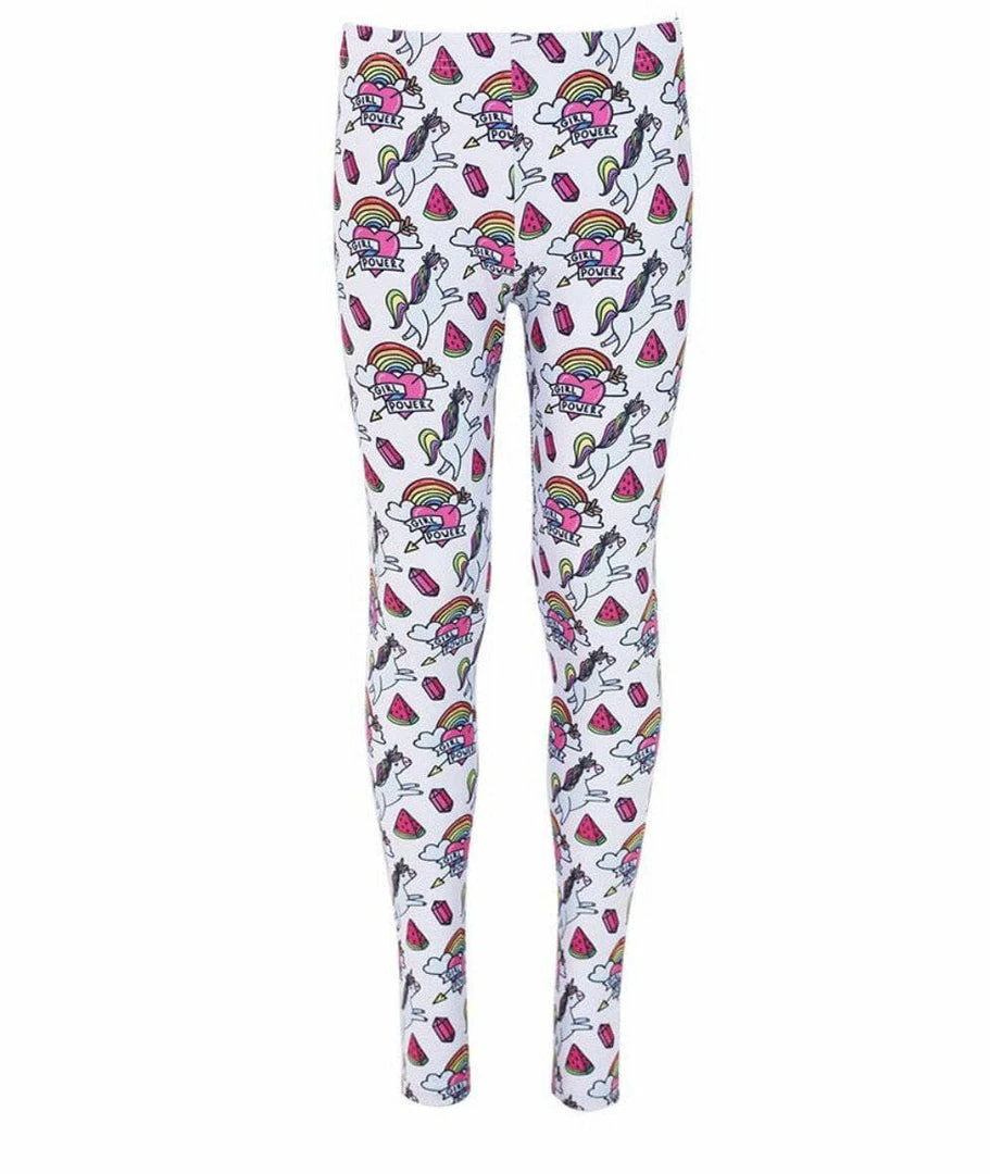 Show them who’s boss in these fun leggings covered in hearts, unicorns and rainbows.ย Cute and tough, just like you!