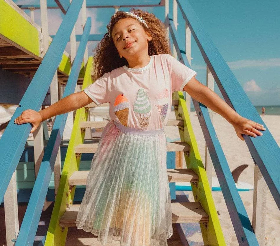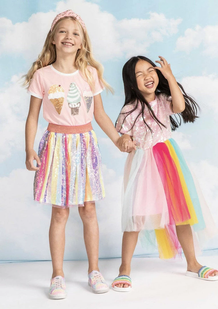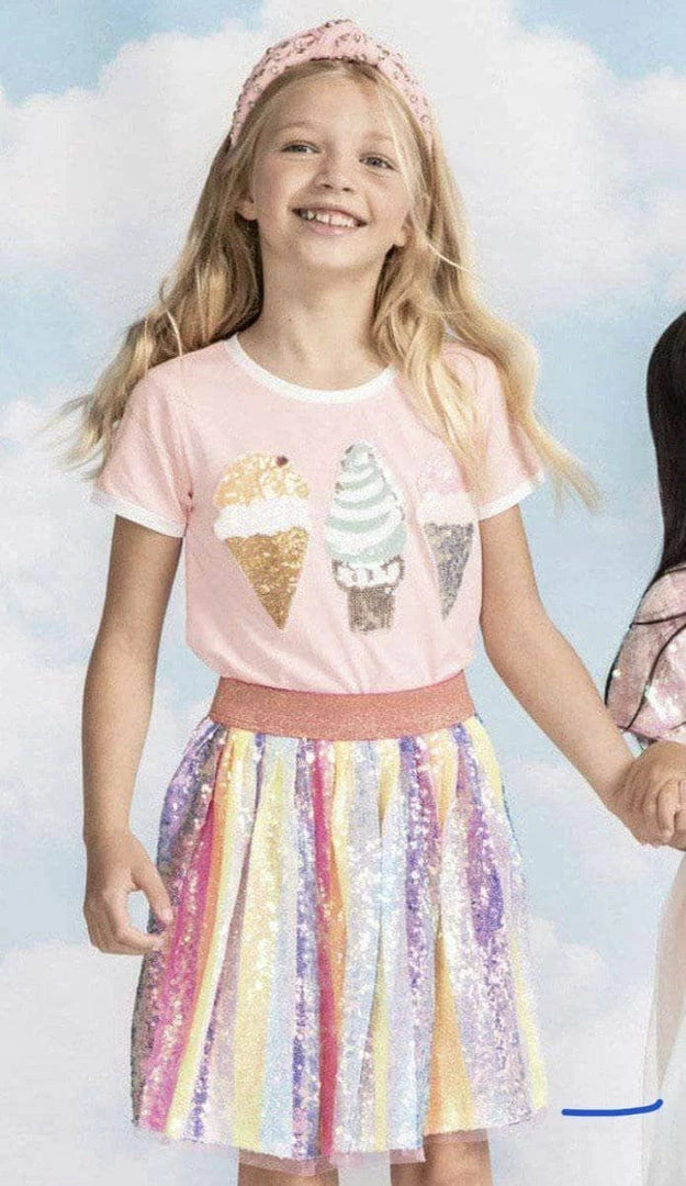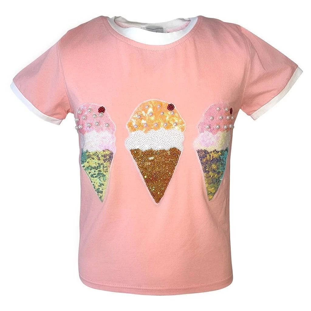 Peachy ringer T-shirt with the cutest sequin ice cream patchesย