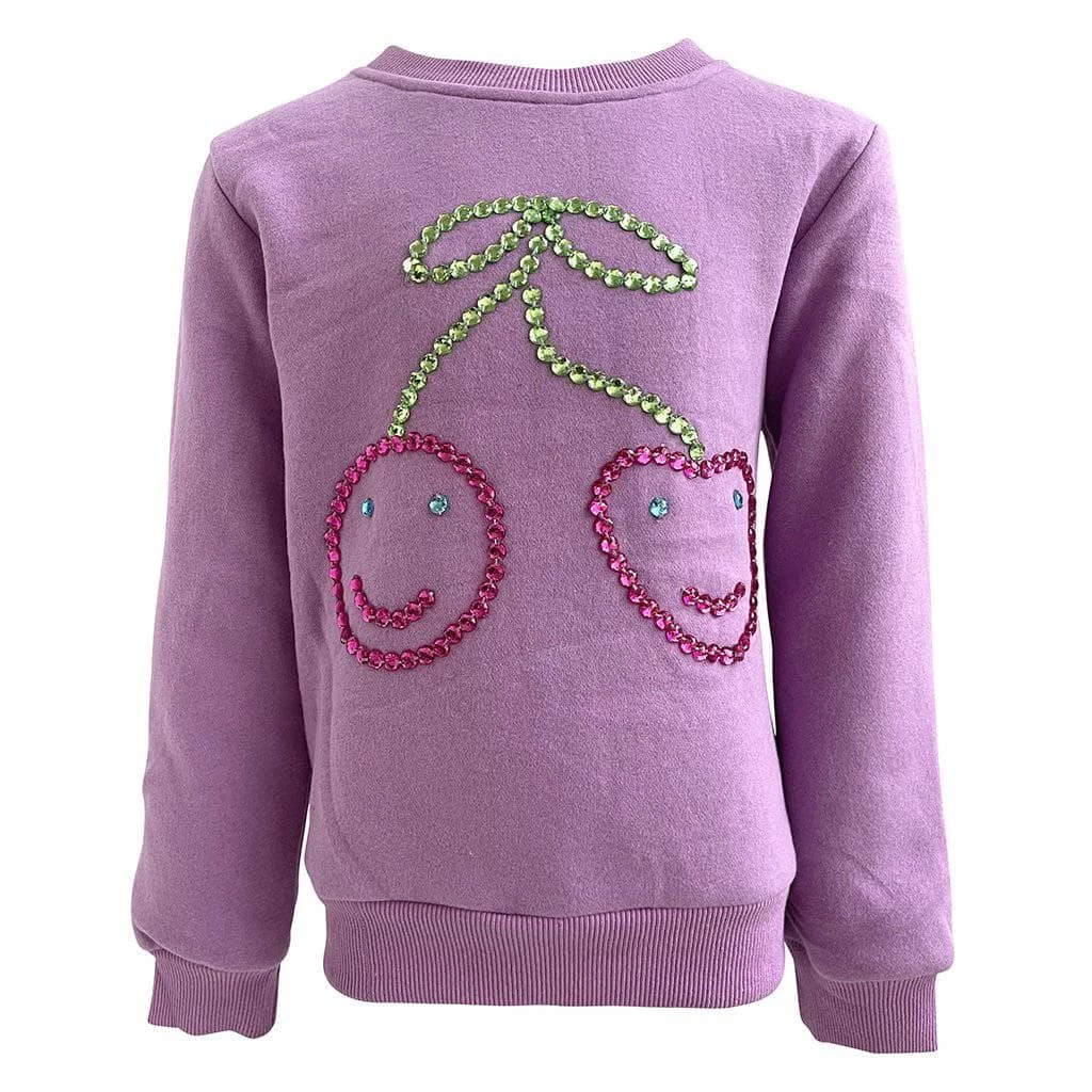 Purple crewneck light weight sweatshirt with smiley cherry gem detail on the front!ย
