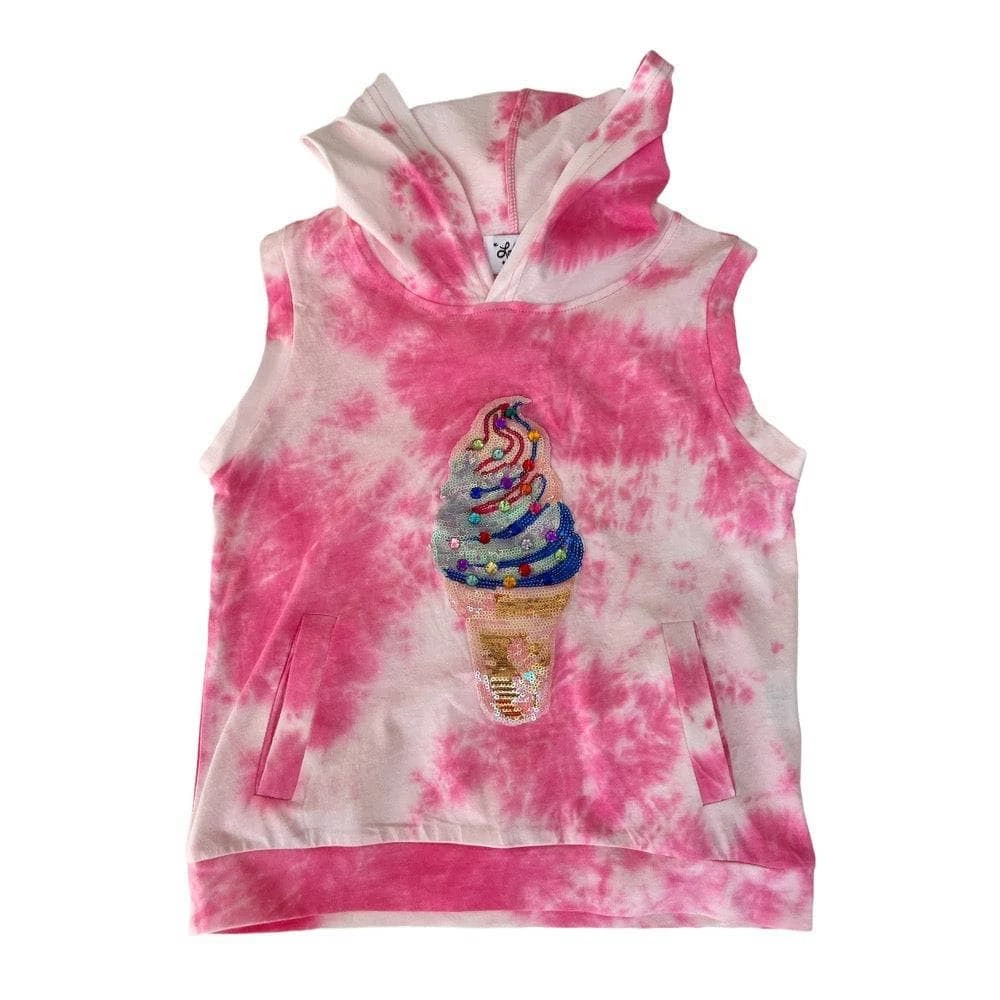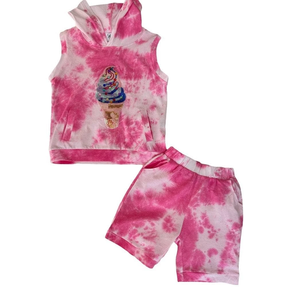 Sleeveless hoodie with ice cream gem Patch and matching shortsย