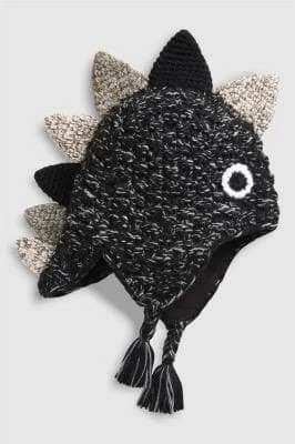 Grey and blue 3D dinosaur hat with scales and ear coverings!