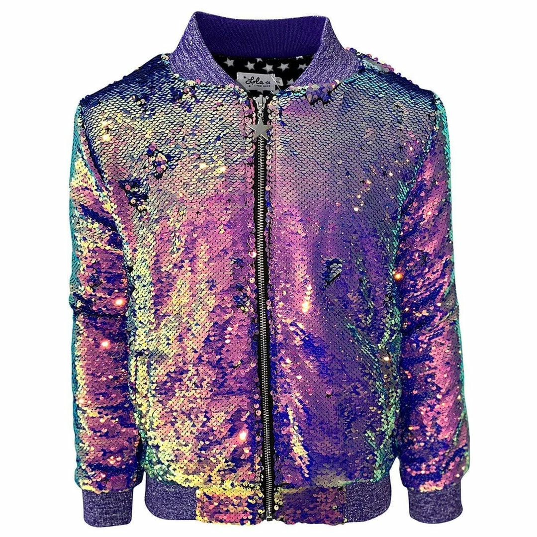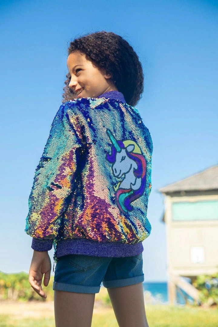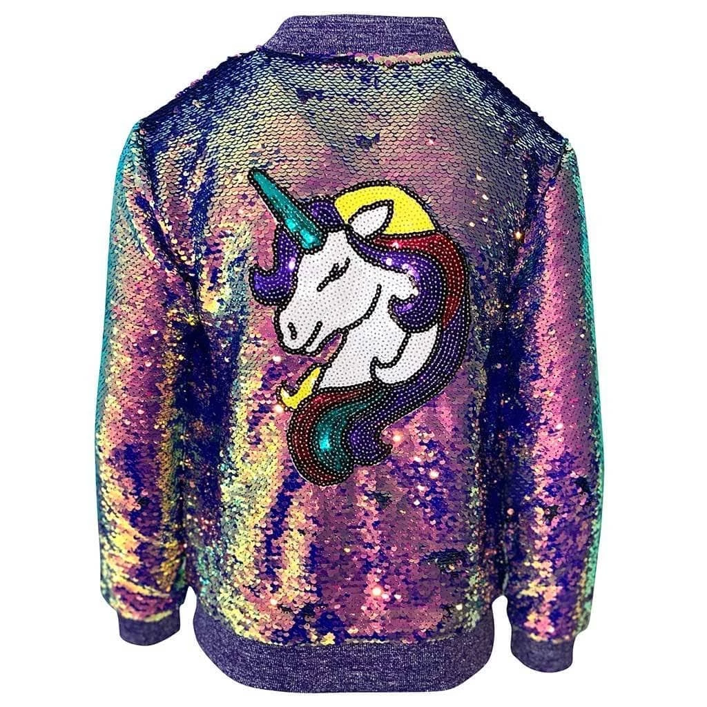 The perfect statement piece for your unicorn lover! This bomber is fully covered in purple sequins with a sequin embellished unicorn patch on the back.
