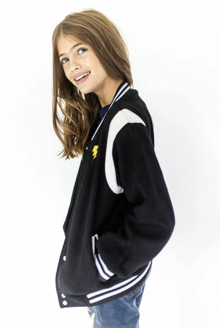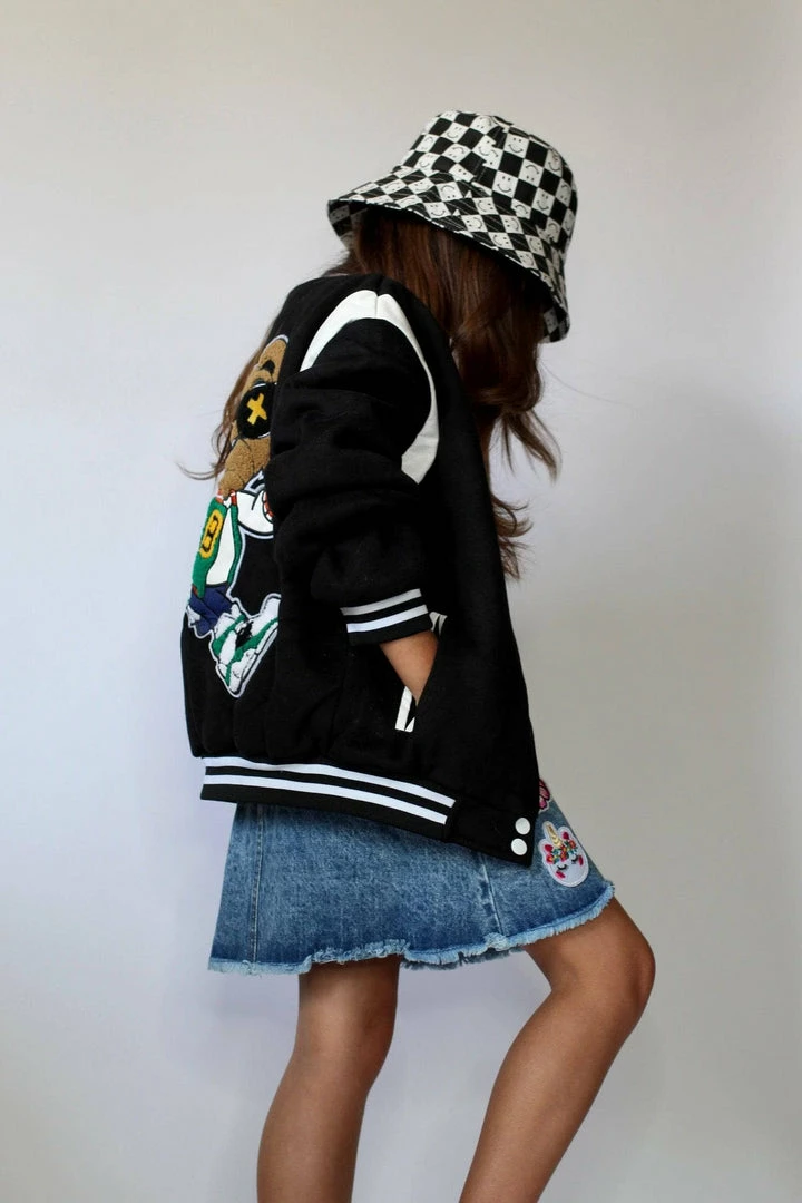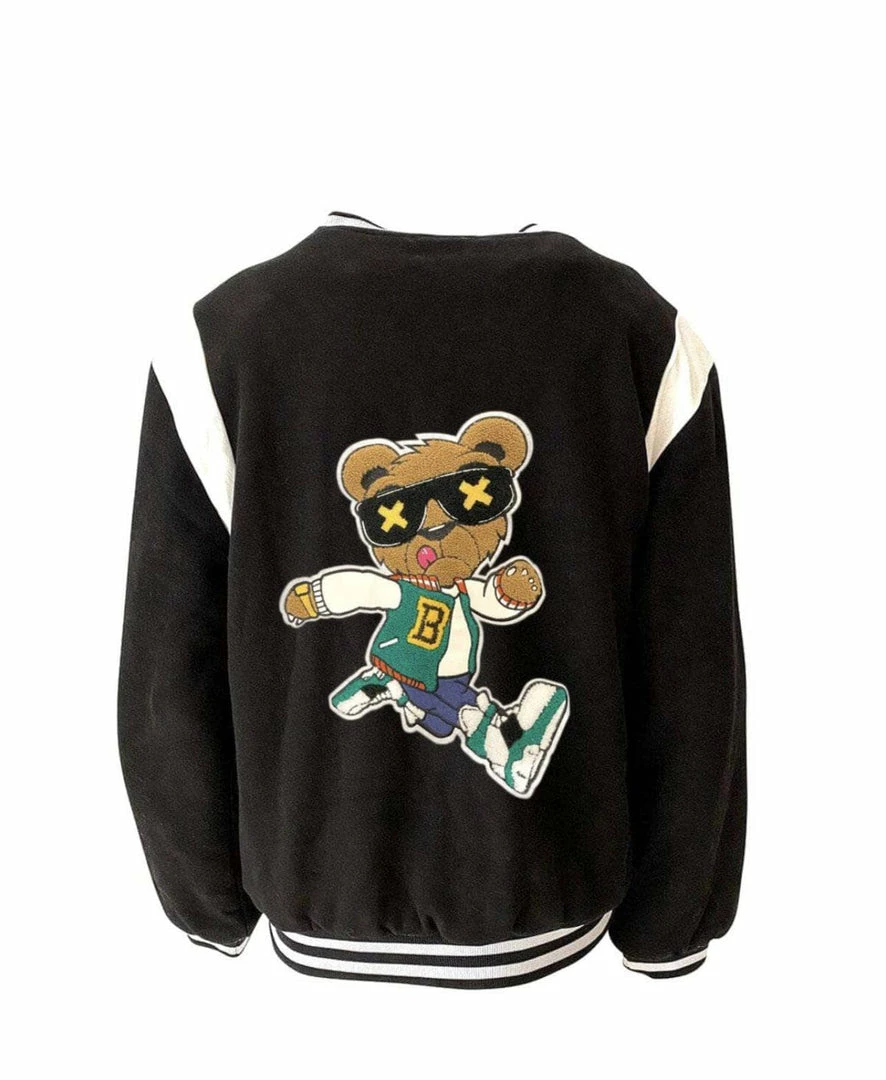 Black hoodie zip up jacket with puff flash teddy patch on the back!