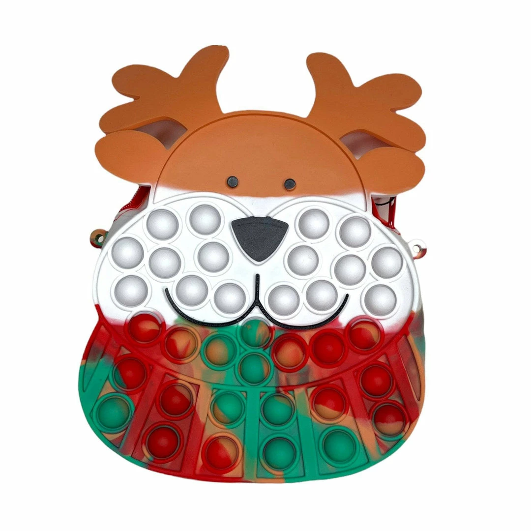 Medium sized fidget crossbodyΒ of Rudolph with brown, white, green, and red all over!