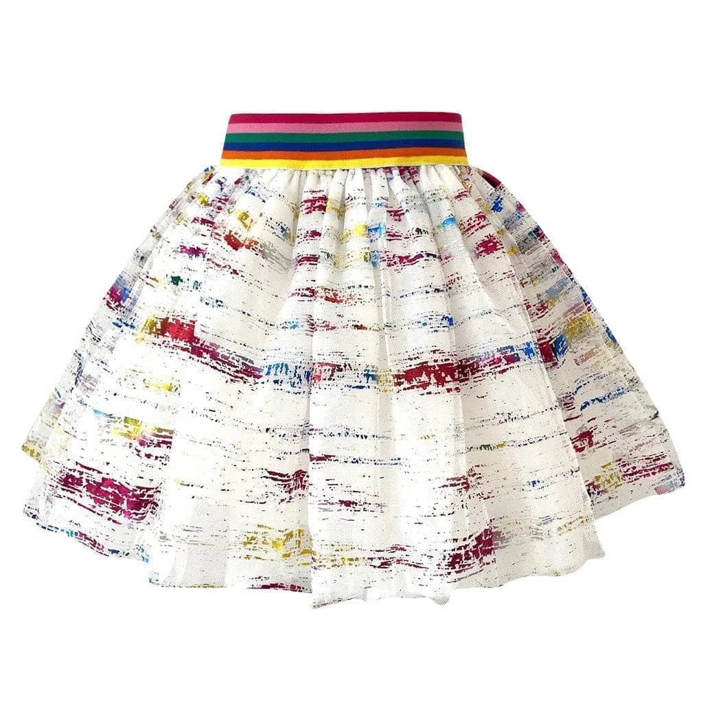 White tutu with neon rainbow waistband and foiled rainbow flakes!Β