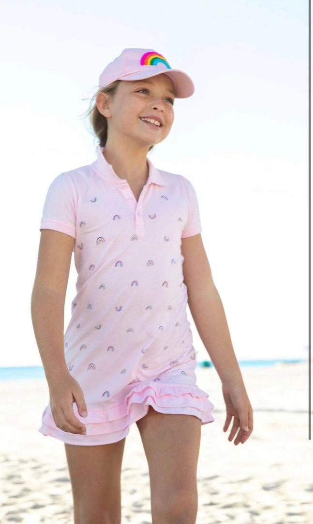 A formal yet classy polo dress with cute little rainbow dream designs embellished all over it.
