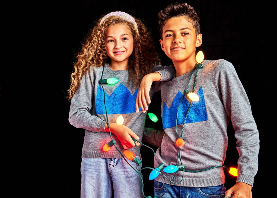 Grey sweater with cobalt blue puff crown on the front! Perfect for boys and girls.ย