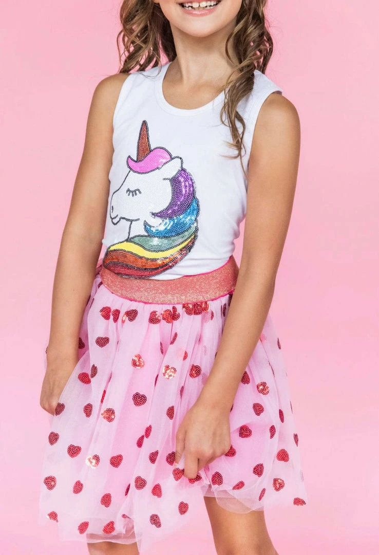Plain white tank with rainbow unicorn patch!
