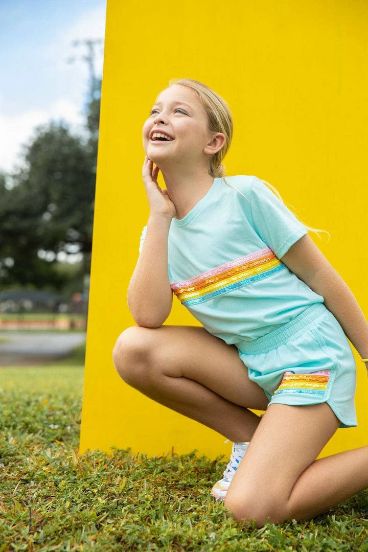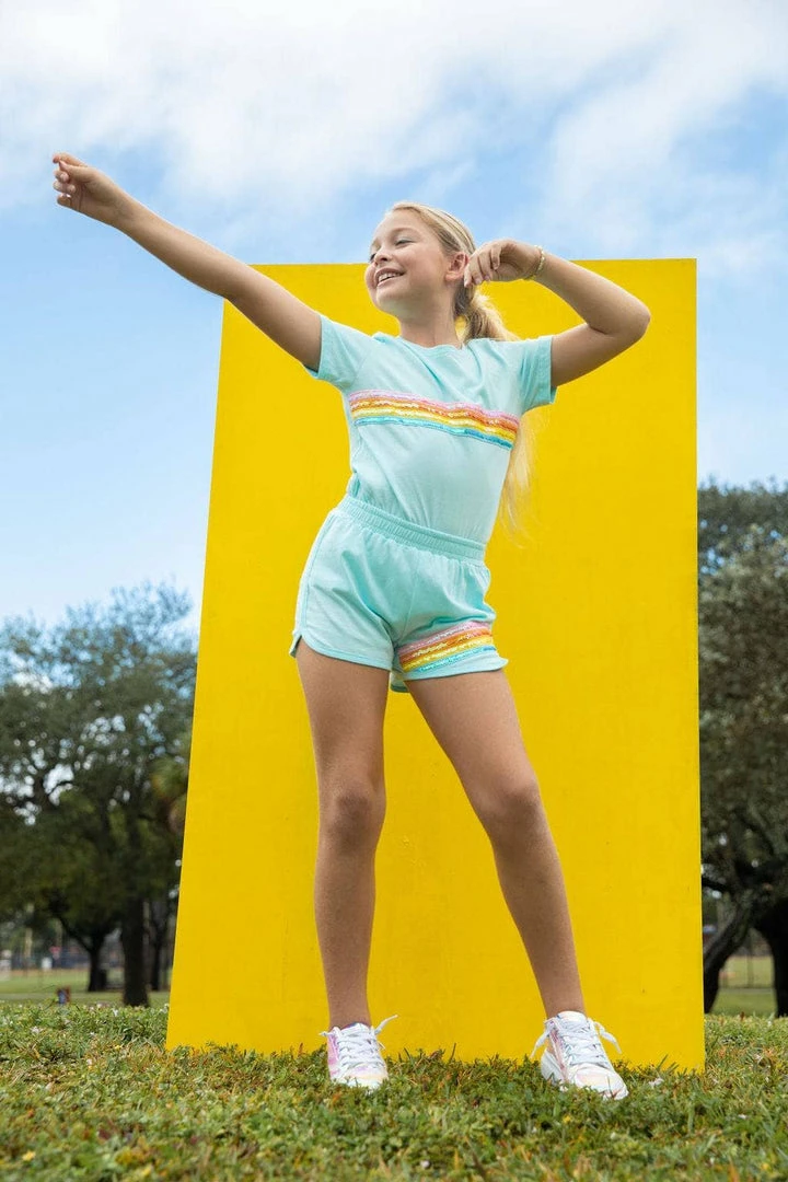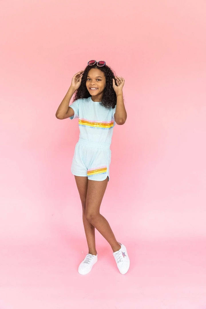 White matching set for your kids embellished with a sequinned stipe on its top and on its shorts. Simple yet stylish!