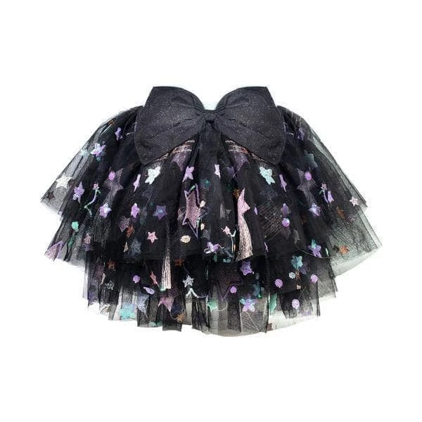 - Sequin stars embellish this fun tutu skirt along with a large bow on the front