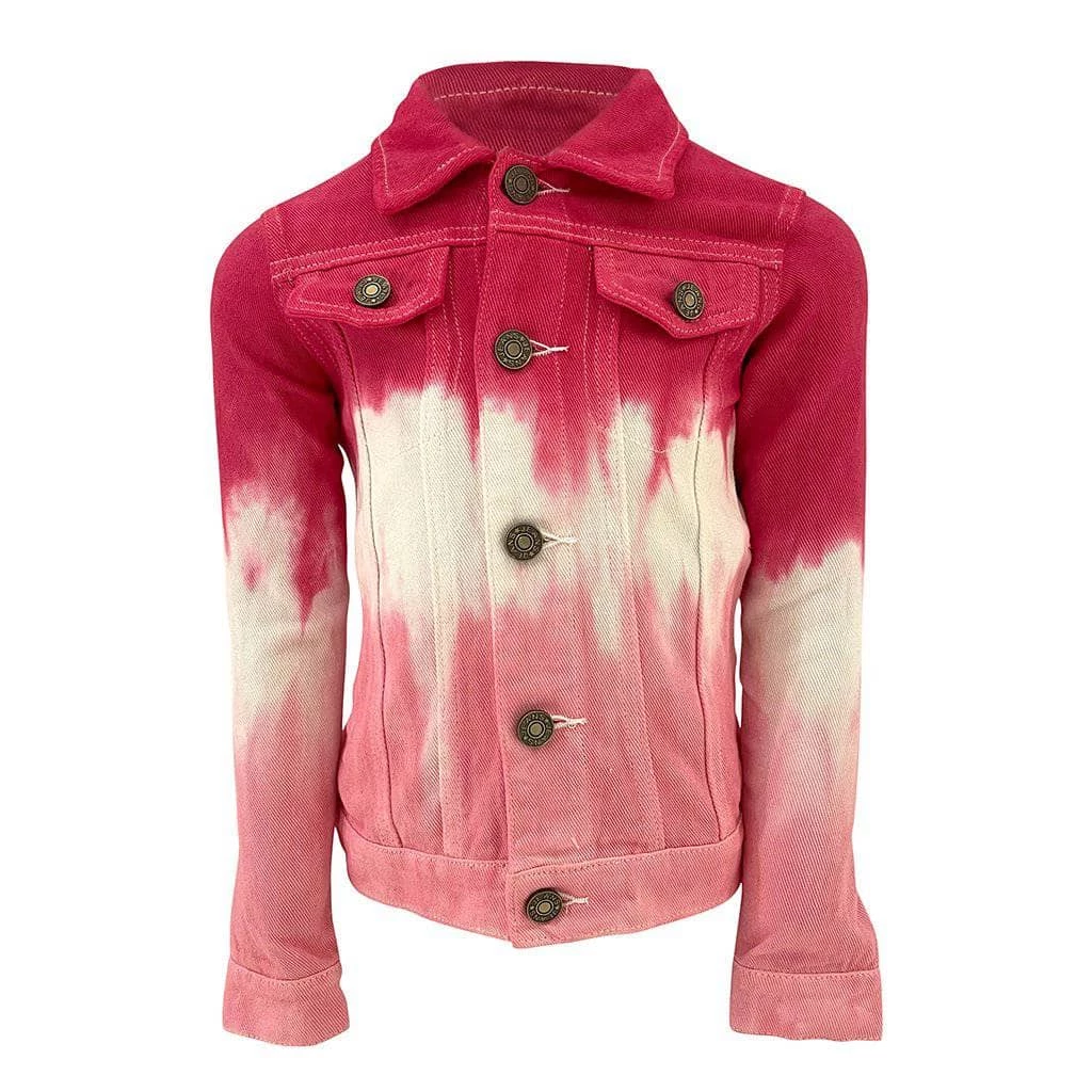 Pink ombre tie dye denim jacket with star lips sequin patch on the back!ย