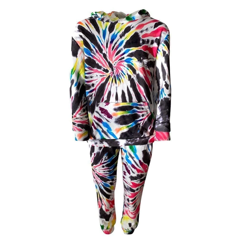 Neon pink green black and yellow swirl tie dye with soft warm fleece make this set the softest and fun tie dye print yetย