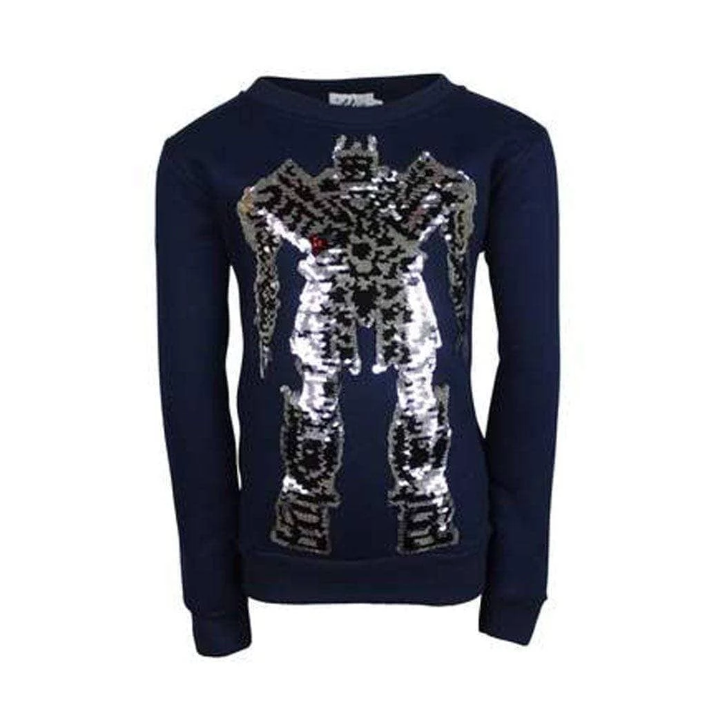 Soft fleece sweatshirt with a large transformer robot flip patch .